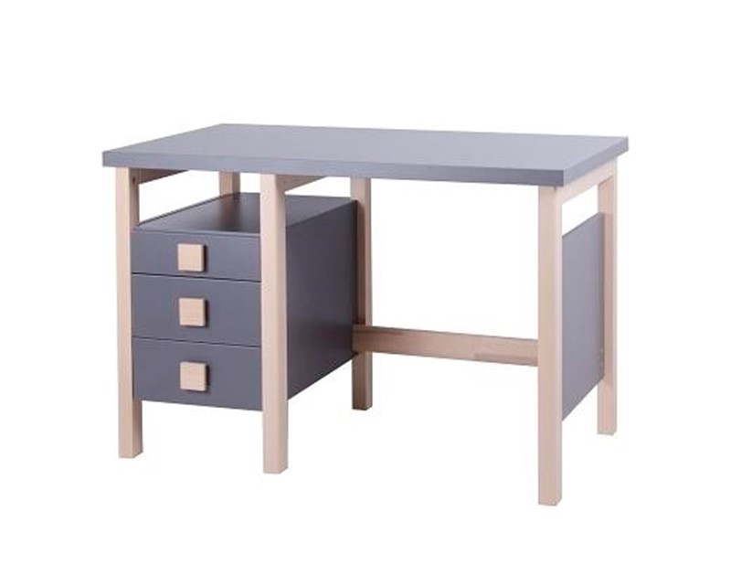 Písací stôl v novom designe má tri zásuvky a veľkú pracovnú dosku, to je ideálna voľba pre školáka do detskej izby.