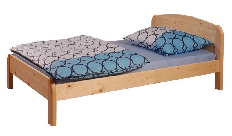 Drevená posteľ, ktorá svojimi oblými tvarmi čiel podvihne úroveň Vašej spálne, ale je vhodná tiež pre zariadenie interiérov hotelového typu.