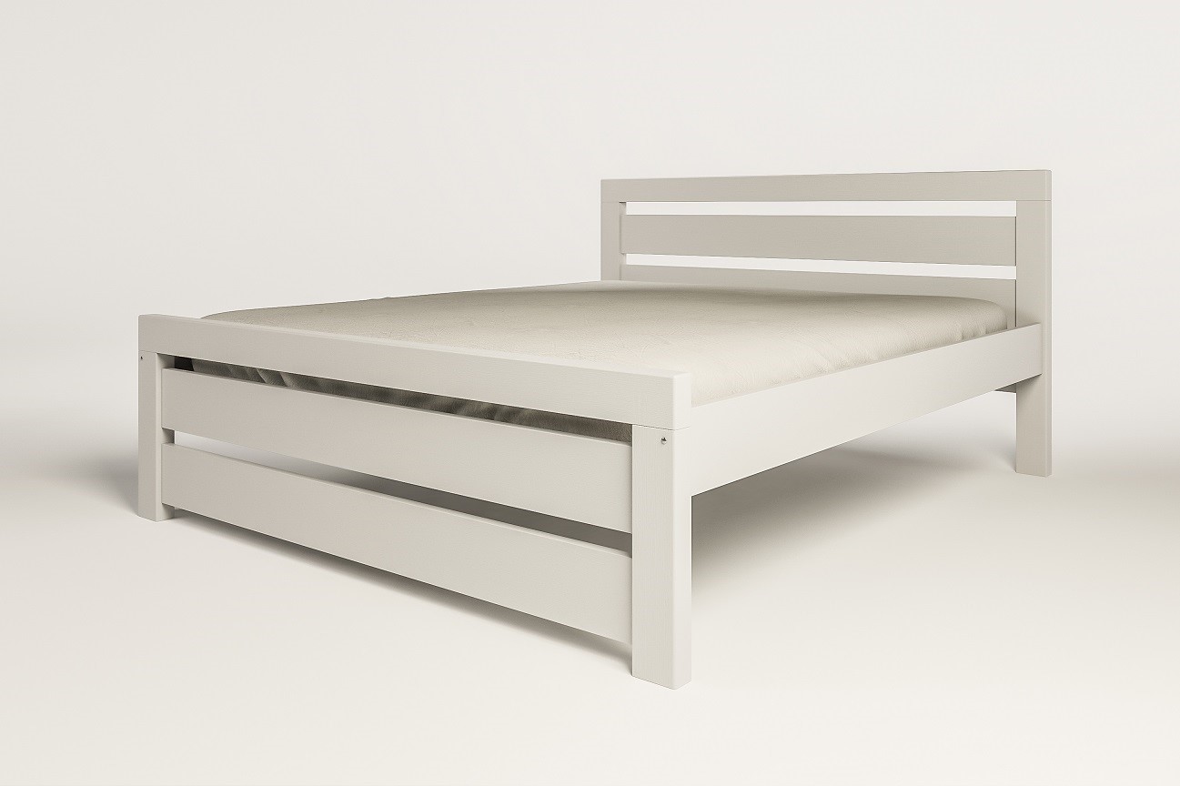 Masívna drevená posteľ v bielom prevedení.